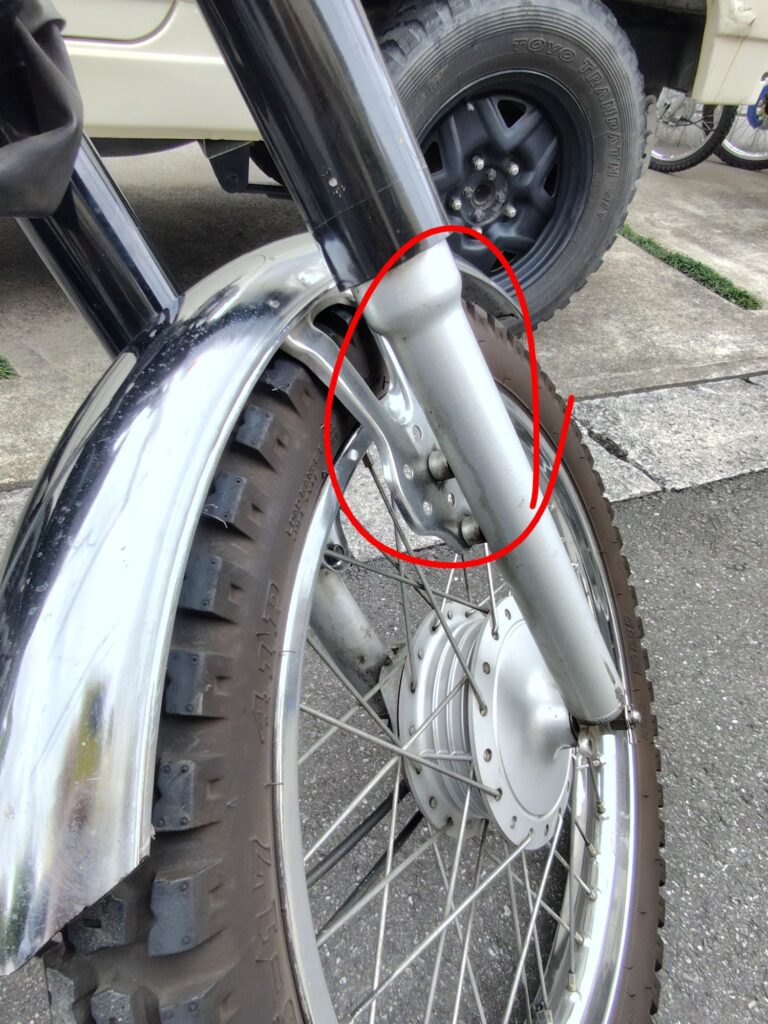 フォークオイルがガッツリ漏れてます。