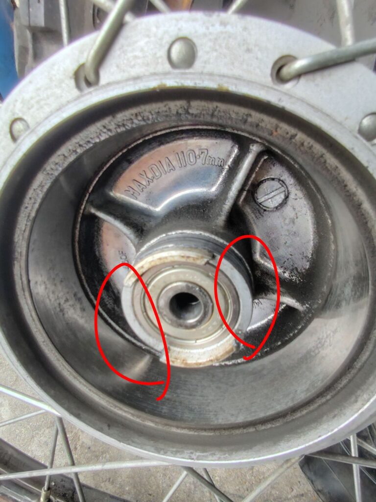 ステム周辺(黄色〇)で引っ掛かりがあり、