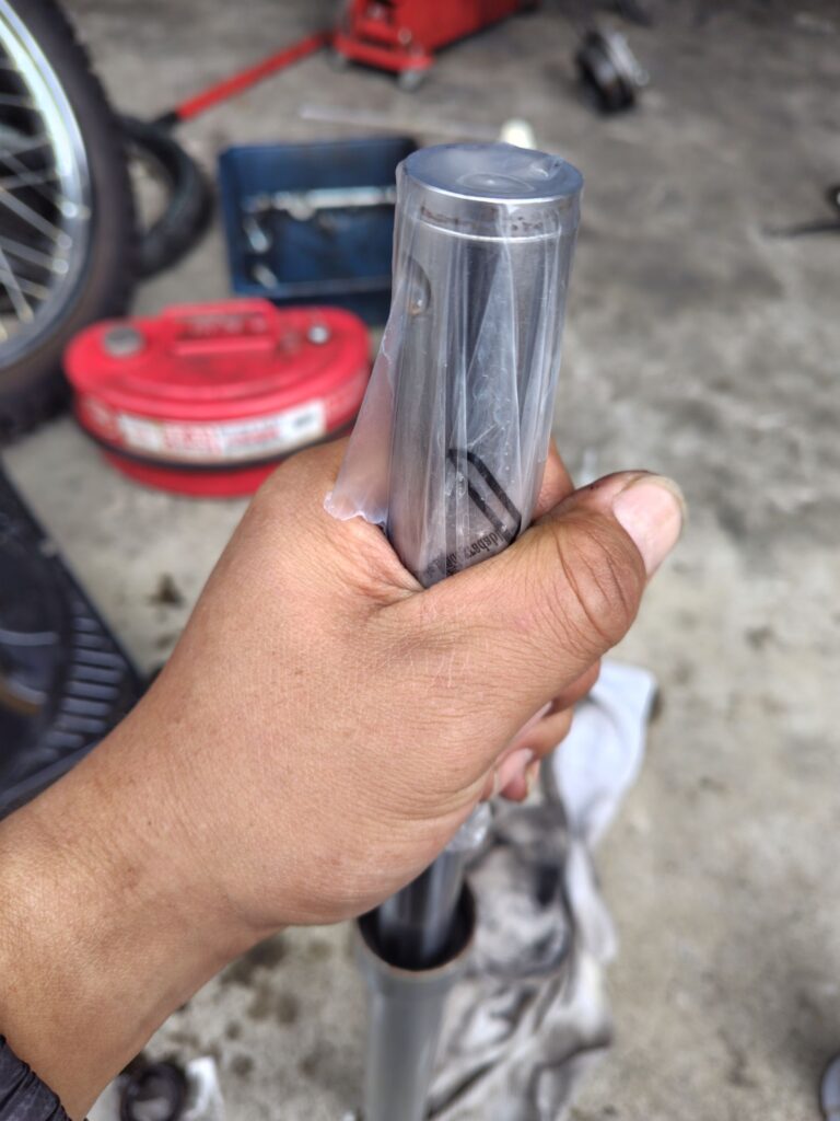 フォークオイルのエアーが抜けたところで